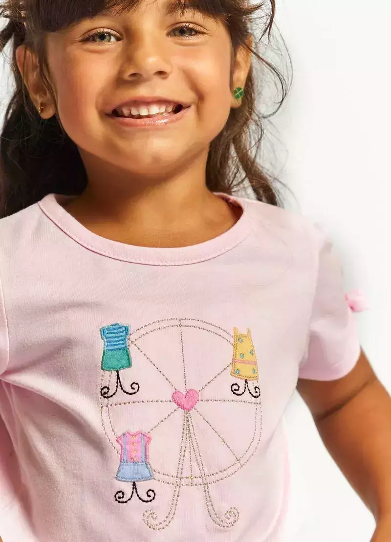 A Blusa Cidade Cor de Rosa é uma peça delicada e cheia de charme, perfeita para as pequenas que adoram looks divertidos e confortáveis! Com estampa inspirada em uma cidade encantada no tom cor de rosa, ela traz um toque lúdico e alegre para o dia a dia.